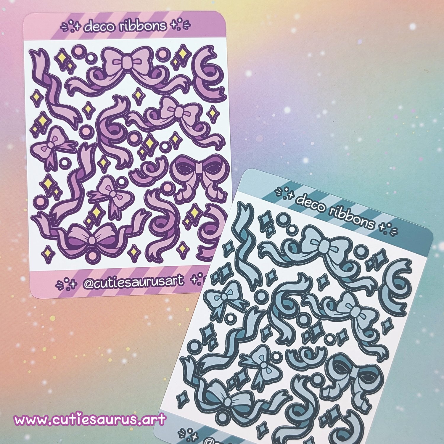 - Total of 13 bow and ribbon stickers per sheet (plus 34 sparkles and dots)